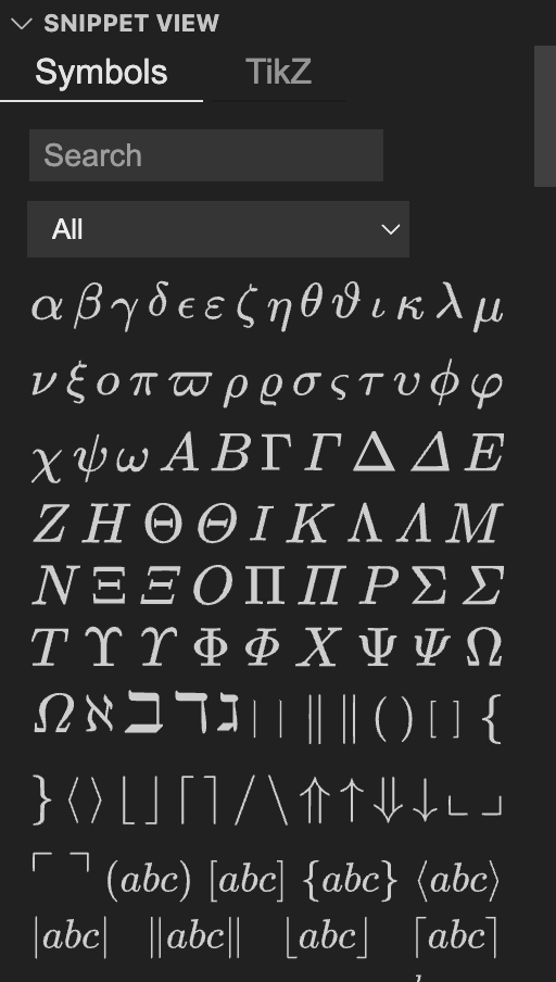打开一个 .tex 文件后,在 VSCode 左侧边栏会出现「」的图标,点击可以展开 LaTeX Workshop 提供的便携功能。